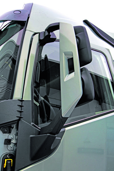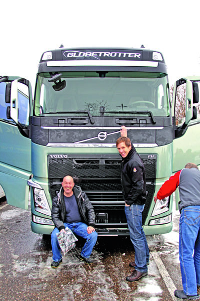 První obchůzka – a hned otázka, kde má Volvo umístěnou nádrž pohonných hmot? Ta může být namontována pod podlahou kabiny, i při provedení Euro VI s objemným výfukem a obsahem nádrže 1500 litrů. Při konstrukci venkovního úložného prostoru se podívali Švédové do Stuttgartu, a dobrou myšlenku v Göteborgu rozvinuli dále. Do objemné vrchní police lze umístit třeba koště o délce 2,3 metrů. Do menší dolní police se vejde například nádrž na vodu. Na uzavíratelnou střešní lamelu alá Actros, která snižuje odpor vzduchu, Švédové rezignovali. Zato potěšili řidiče se širokými dvoustupňovými čelními schůdky. Tak se dá umývat čelní sklo mnohem lépe než z filigránských schůdků Mercedesu, a dobře posvačit. Na váze jsme s Volvem ještě nebyli. Pokud věříme výrobci, má Volvo FH o něco nižší hmotnost než Actros. Ve vnitřním vybavení kabiny najdeme řadu paralel. U Volvo FH jsou nad zrcátkem pro holení vrchní úložné přihrádky. Zataženému střednímu dílu zůstává Volvo věrné. To umožňuje větší volnost pohybu při převlékání. Protože poličky nad předním sklem využívají plně výšku kabiny, lze říci, že v kabině je méně prostoru než v Actrosu. Je ale mnohem více využitelný. Super řešení je nové dvoustupňové nastavení volantu ve Volvu. Vodorovné, svislé nastavení, vše je možné v kombinaci s praktickým odblokováním nožního pedálu. Tím udává tento Švéd vysoké standardy.