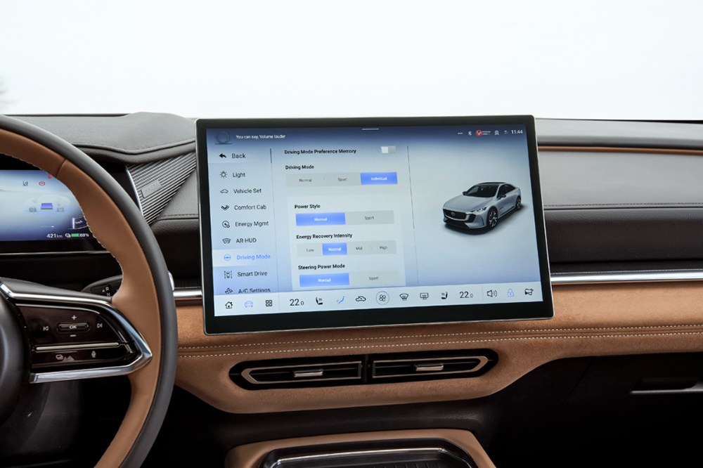 Dominantou palubní desky je proto velký centrální displej o úhlopříčce 14,6 palce, v němž je soustředěna většina funkcí. Jejich uspořádání je logické a menu systému ploché, takže obsluha nejčastěji používaných funkcí je rychlá a intuitivní.