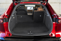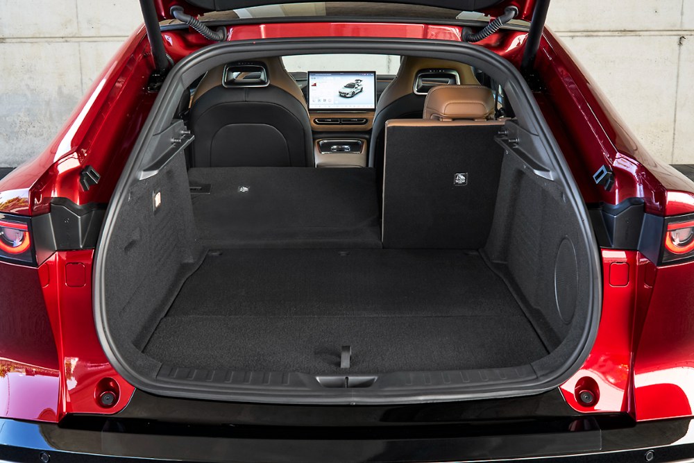 Praktičnost zůstává zachována – otvor zavazadlového prostoru má šířku 964 mm a výšku 619 mm, což jsou hodnoty nad rámec klasických sedanů. Samotný jeho objem činí 466 litrů a po sklopení sedadel až 1074 litrů, praktičnost navíc zvyšuje i úložný prostor pod přední kapotou. Má objem 72 litrů, a tak se do něj vejdou například nabíjecí kabely spolu s povinnou výbavou. Mazda se snažila propojit eleganci s funkčností, což dokazuje například elektricky výsuvný spoiler, který ve vyšších rychlostech zlepšuje stabilitu.