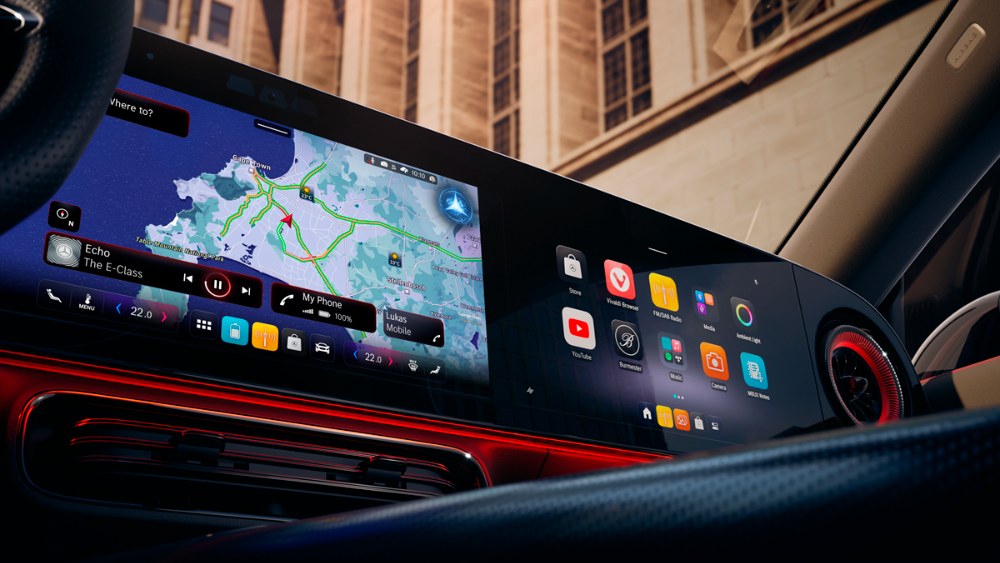 Mercedes-Benz spolupracuje s předními technologickými partnery, jako jsou Google a Microsoft, a díky otevřené architektuře systému MB.OS dokáže integrovat obsah třetích stran. Zároveň si ale zachovává vlastní typické prostředí uživatelského rozhraní, které zákazníci znají a oceňují pro jeho přehlednost a komfort.
