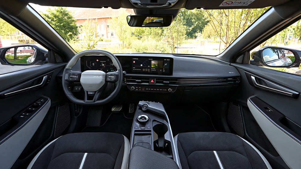 Interiér modelu EV4 je zaměřen na komfort a intuitivní ovládání. Kabina je vybavena moderními technologiemi a pokročilými asistenčními systémy, které zvyšují bezpečnost a pohodlí řidiče i pasažérů. Použité materiály reflektují závazek Kia k udržitelnosti, přičemž interiér nabízí dostatek prostoru a současně ergonomicky navržené ovládací prvky.
