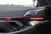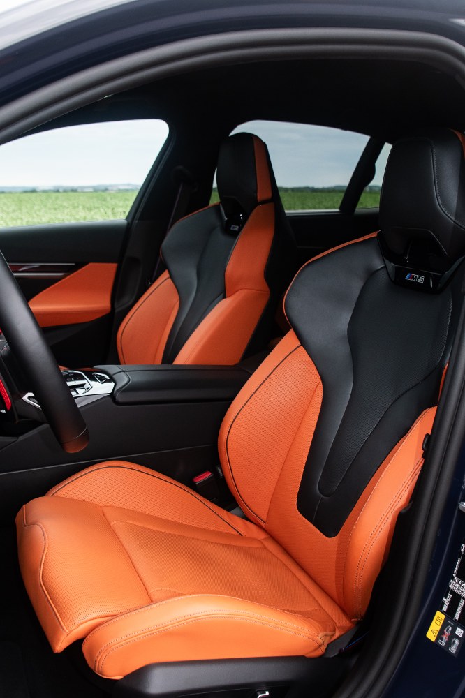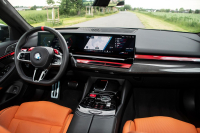 Nenápadnost byla tradiční vlastností předchozích generací M5 také pokud jde o interiér. V tomto směru je generace G90 víceméně klasickou M5, jež přidává na první pohled jen detaily typu červených tlačítek na volantu. Vrcholný model je pak jediným v nabídce celé řady 5, který má standardně dodávaný lepší infotainment BMW Live Cockpit Professional nebo M multifunkční sportovní sedadla. Potenciál vozu tak člověk objeví až ve chvíli, kdy začne blíže zkoumat široké možnosti nastavení dostupné přes tlačítka na středovém panelu, a hlavně přes rozměrný středový displej. U současné M5 kromě věcí točících se kolem sportovní jízdy přibyly možnosti nastavení týkající se elektrické části pohonu a nabíjení.