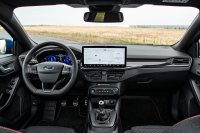 Co se ale nezměnilo, to je fakt, že na pohled ani po pěti letech typ Focus příliš nezestárnul a pořád vypadá k světu. Je to především zásluhou modernizace z roku 2021, jež přinesla novou tvář, zahrnující také matricové LED světlomety a v interiéru nový multimediální systém s 13,2palcovým středovým displejem. Testovaná ST-Line X k tomu přidává agresivnější nárazník, specifickou masku chladiče, dvojitou koncovku výfuku, atraktivní kola a loga ST-Line na blatnících. Na první pohled není těžké tento vůz zaměnit za skutečný Focus ST, leč v našem případě je pod kapotou litrový EcoBoost o výkonu 114 kW (155 k) spojený s manuální převodovkou. Pro pořádek, tato kombinace nedávno z ceníku vypadla, ale na českém trhu jsou pořád k dostání skladové vozy v konfiguraci spojující silnější zážehový agregát a přímo řazenou převodovku.