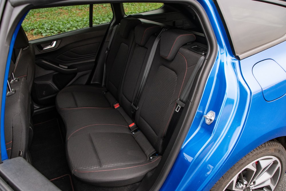 Výbava ST-Line se samozřejmě podepisuje také na interiéru. Sportovně tvarovaný volant má červené prošívání, jež se objevuje také na sedadlech nebo na řadicí páce. Strop je standardně černý a výbava obecně bohatá. Focus, zejména v provedení Kombi, ale nakonec zaujme spíše vnitřním prostorem. V rubrice Náš test se čtvrtá generace před lety už objevila (viz AR 10/’18) a už tehdy jsme nabídku místa v interiéru chválili, zajímavé ale je, že i dnes jde pořád o jedno z těch vůbec největších kombi nižší střední třídy, jaké se na trhu nachází. Stále dokonce dokáže v určitých ohledech nabízet více než nejnovější generace tolik populární Škody Octavia. Tak například Focus Kombi disponuje větším prostorem pro hlavy cestujících v obou řadách (vpředu +49 mm, vzadu +80 mm), více místa je i pro nohy vzadu (+12 mm) a za pozornost stojí též zavazadlový prostor. Základní objem je totiž velmi solidních 635 litrů, přičemž Focus Kombi získává litry především šířkou. I v tom nejužším místě má 1158 mm (+153 mm proti aktuální Octavii Combi). Možná to na první pohled není úplně patrné, ale německé kombi je parádní rodinný vůz, a také velmi schopný automobil pro stěhování. Variabilní podlaha nebo páčky pro sklopení zadních opěradel jsou už jen vítanými drobnostmi navíc.