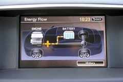 Nejčastěji zelená kontrolka EV, signalizující řidiči elektrickou jízdu, zhasínala kolem 80 km/h. Infiniti M35h používá akumulátory Li-Ion s kapacitou 1,4 kWh, jež se velmi rychle nabíjejí. Jsou ukryté v zavazadlovém prostoru, jehož objem zmenšily na 350 l. Podle dlouhodobých údajů palubního počítače byl testovaný vůz s 3240 ujetými kilometry v režimu EV téměř 180 km. Do této vzdálenosti se ale započítává také brzdění, protože značnou část deceleračního účinku obstarává elektromotor. Elektrická energie hraje důležitou roli i v hydraulickém okruhu, neboť potřebný tlak vyvolává místo podtlakového posilovače elektromotor. Brzdový systém EDIB (Electric Driven Intelligent Brake) spolu s elektrohydraulickým posilovačem řízení (funguje i s vypnutým šestiválcem) přispěly k tomu, že jsme se od výrobcem udávané hodnoty 7,0 l/100 km vzdálili jen o 1,4 litru. U hybridních automobilů totiž činí navýšení spotřeby běžně i 40 %. Inifniti M35h se v době testu prodával od 1 456 300 Kč.