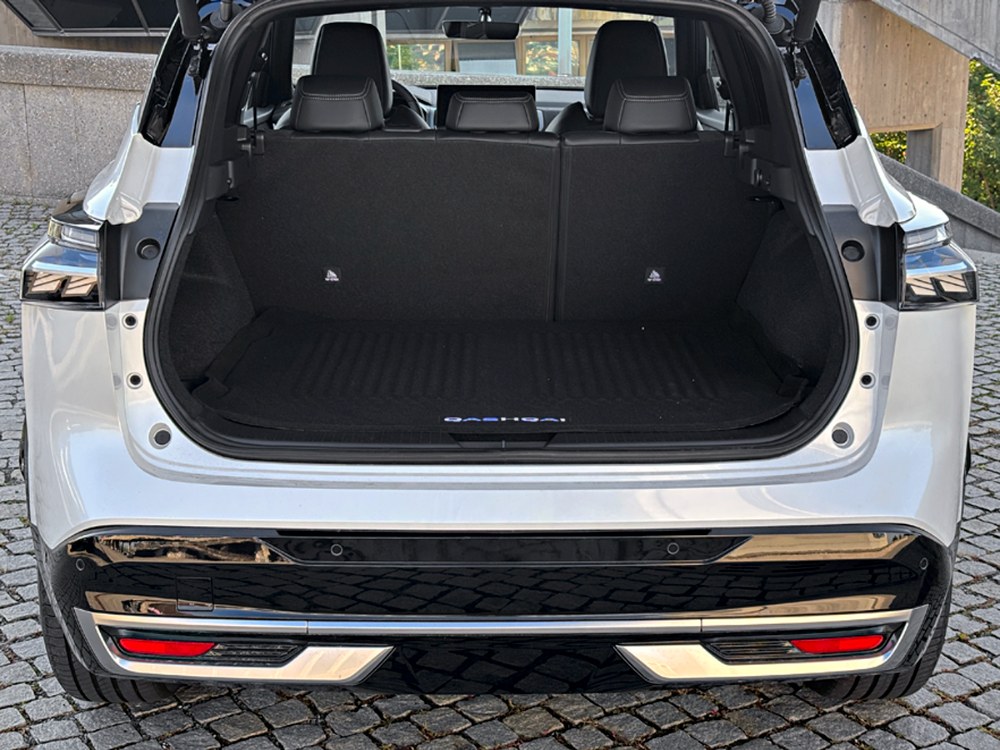 Objem zavazadlového prostoru u nejvyšší výbavy Tekna+ činí 455 litrů, zatímco základní Acenta nabídne 504 litrů. Samotný prostor je ale řešen velmi chytře. Dno tvoří dvě desky s madly umožňující rozdělit jej na menší sekce. Objemově však Qashqai mezi šampiony nepatří. Například na Subaru Forester, které nabízí největší objem (508 až 1720 l), nejdelší ložnou plochu (911 až 1545 mm) a zároveň i největší šířku (1098 m), ztrácí ve všech ohledech.