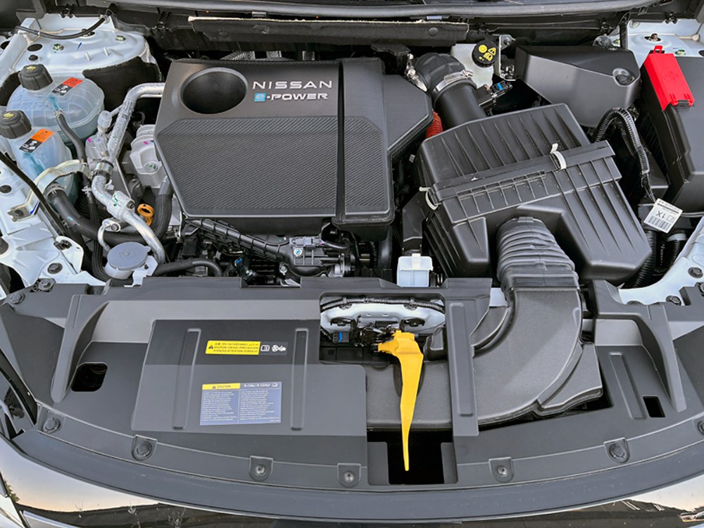 Pohon e-Power je sériový hybrid, kde zážehový spalovací motor funguje jako generátor elektrické energie a přední kola pohání pouze elektromotor. Obě jednotky nejsou mechanicky propojené. Vůz se tedy chová spíše jako elektromobil než hybrid. Rozjezd je vždy na elektřinu a pokud akcelerátor nesešlápnete příliš prudce, spuštění zážehového přeplňovaného tříválce o objemu 1497 cm3 s výkonem 116 kW (156 k) a točivým momentem 250 N.m ani nezaznamenáte.