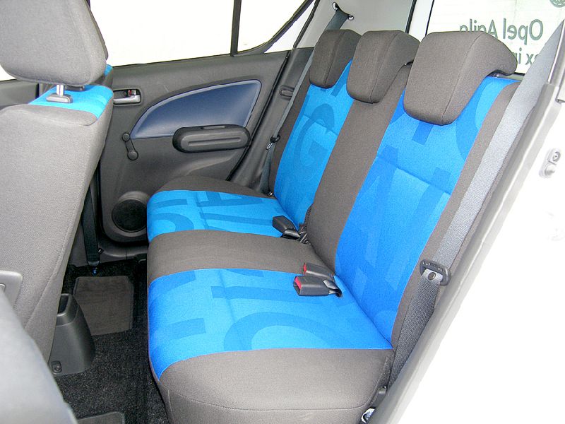 Ačkoli je nová Agila postavena na podvozku se stejným rozvorem jako její předchůdkyně, je o 205 mm delší, o 60 mm širší a o 70 mm nižší. Z větších horizontálních rozměrů těží velikost obou částí interiéru. V prostoru předních sedadel jsme změřili šířku ve výši loktů/ramen 1400/1340 mm a výšku stropu nad svisle seřiditelným sedákem řidiče 1030 až 1070 mm, v obdobných místech zadních sedadel 1340/1270 mm, resp. 970 mm. Za předními sedadly posunutými zcela vzad je mezera pro nohy zadních cestujících sice jen 100 mm, po jejich nastavení do střední polohy se však zvětší na uspokojivý dvojná-sobek. Zavazadlový prostor, vymezený vzadu 70 mm vysokým prahem, je v základním uspořádání za zadními opěradly dlouhý v rovině podlahy 470 mm, široký 1010 mm a pod krytem vysoký 420 mm. Sklopením opěradel do roviny podlahy (se současným posunutím sedáků dolů a vpřed) se ložná délka zvětší na 1240 mm, pod podlahou je ještě malý úložný prostor hluboký asi 150 mm.