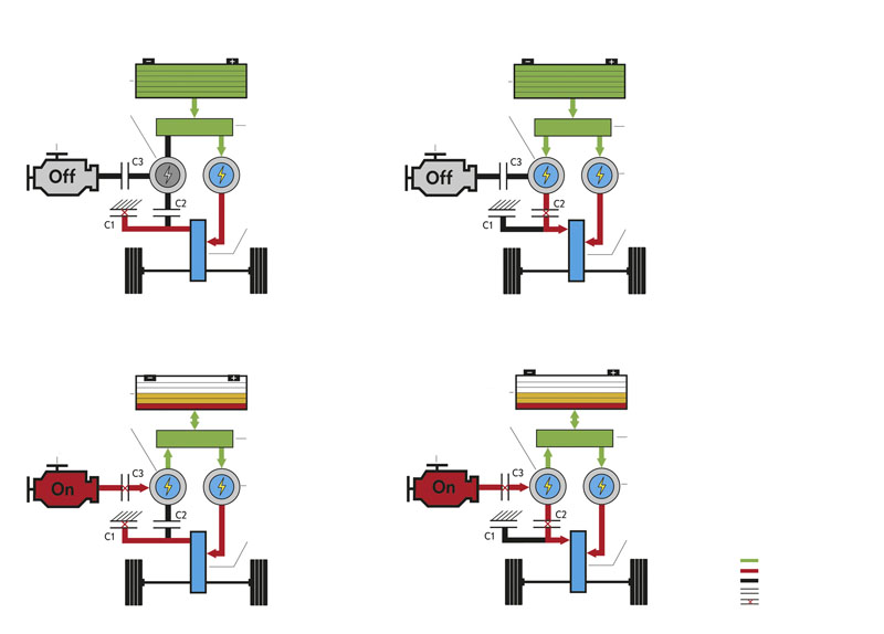Podle našich měření je Ampera schopna z klidu na 50/80/100 km/h zrychlit během 6,5/9,4/12,3 sekundy (automobilka udává zrychlení 0 – 100 km/h za devět sekund). Provedená měření ukazují, že tyto parametry zůstávají stejné při jízdě s nabitými i vybitými akumulátory. V útrobách tohoto vozu je kromě hlavního trakčního elektromotoru ještě druhý elektromotor/generátor a zážehový pístový motor. Tato trojice spojuje své síly prostřednictvím planetového soukolí. V každém z jízdních režimů Ampera používá jako zdroj síly k pohonu hlavní elektromotor, který je do rychlosti přibližně 110 km/h díky zablokování planetového soukolí pevně spojen s koly. Nad rychlost 110 km/h přichází na řadu asistence druhého elektromotoru, jenž přidá svůj točivý moment, a tím umožní snížit otáčky hlavního elektromotoru pro zlepšení celkové účinnosti. V režimu jízdy se spalovacím motorem je situace podobná, avšak nad zmiňovanou rychlost cca 110 km/h pomáhá snižovat otáčky hlavního elektromotoru točivý moment zážehového čtyřválce.