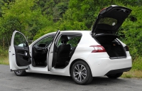 Všechny typy mají standardně ABS s brzdovým asistentem, stabilizační systém či asistent rozjezdu do svahu, za příplatky jsou např. Driver Assis-tance Pack (aktivní tempomat, upozornění na nebezpečnou vzdálenost a riziko srážky, samočinné nouzové brzdění), sledování slepého úhlu, kontrola tlaku v pneumatikách či již zmíněné sady usnadňující parkování nebo měnící charakteristiku posilovače řízení a reakci motoru na pohyb akcelerátoru. Oba vozy jsme zkoušeli v běžných provozních podmínkách. Mají takřka shodné, vesměs velmi dobré jízdní vlastnosti, charakteristické pro vozy s předním pohonem. V zatáčkách a při rychlých změnách směru jsou lehce nedotáčivé s malými bočními náklony, dobrá směrová stabilita je důsledkem poměrně dlouhého rozvoru a optimální geometrie podvozku. Dobrá celková aerodynamika se podílí na hospodárném provozu a projevuje se malým aerodynamickým hlukem i nepatrnou citlivostí na boční vítr. Řízení je přesné, přiměřeně lehké a zachovává stále dobrý kontakt řidiče s vozovkou. Účinná neslábnoucí brzdová soustava zvládá s rezervou nároky dynamické jízdy i při intenzivním opakovaném brzdění. Na jízdním komfortu se podílí vhodně zvolená charakteristika odpružení a tlumení pod-vozku, vyhovující v celém rozsahu zatížení. Výkonové parametry obou motorů zaručují dobré dynamické vlastnosti, což potvrdila i obvyklá měření. Vzhledem k režimu zkoušek plně uspokojuje i spotřeba paliva, samozřejmě nižší u kombi s dieselem. Peugeot 308 patří k nejlepším vozům nižší střední třídy, z nichž mnohé překonává vyváženými vlastnostmi. Zájemci mohou vybírat z pestré palety, v době testu byly hatchback v cenovém rozpětí 340 000 až 603 000 Kč, resp. kombi SW za 412 000 až 635 000 Kč. Testované vozy Allure stojí 480 500, respektive 598 000 Kč.