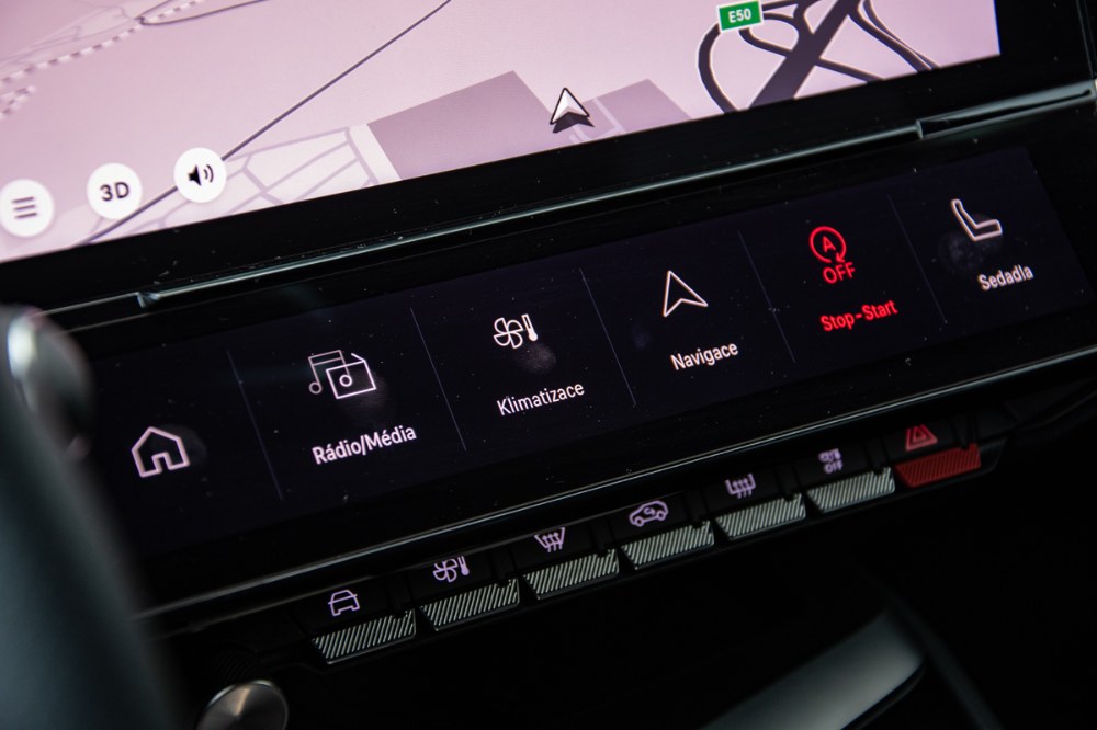 A současně nabízí také šikovnou pomůcku v podobě dotykové lišty rozdělené na šest políček. Co budou jednotlivá políčka dělat, to záleží na vás. Automobilka tento systém označuje jako i-Toggles, přičemž dostupný je od druhé úrovně výbavy Allure. Tímto způsobem si můžete vytvořit jednoduché zkratky pro vstup do různých menu, ale také lze do těchto políček uložit například oblíbený telefonní kontakt nebo základní teplotu klimatizace. Nechybí ani několik fyzických tlačítek, opět sloužících pro přímý vstup do různých menu. Ve výsledku jde o výborný kompromis mezi módou dotykového ovládání a tradičním přístupem založeným na tlačítkách. Samozřejmě lze spoustu věcí ovládat přímo z volantu.