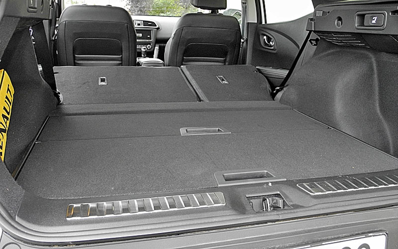Sklopením zadních opěradel se ložná délka zvětší na nejméně 1600 mm. Sklopí-li se opěradlo spolujezdce vpřed, lze uvnitř vozu přepravovat předměty dlouhé až 2500 mm. Z výbavy v úrovních Life, Zen, Intens a Bose měly testované vozy dvě posledně jmenované, nejluxusnější pak typ s motorem 1.6 dCi a pohonem 4x4. Výčet standardních prvků, bohatý již v základní Life, se u dalších rozšiřuje, a tak jmenujme několik pro Bose jako bezklíčkové zamykání dveří a spouštění motoru tlačítkem, elektrické ovládání skel dveří i sklopných a vyhřívaných zpětných zrcátek, šest airbagů včetně hlavových pro obě řady sedadel, úchyty Isofix na vnějších zadních sedadlech, tempomat s omezovačem rychlosti, palubní počítač s dotykovým displejem 7“, multimediální a navigační systém R-Link 2, audiosoustavu Bose s osmi reproduktory včetně subwooferu, dvouzónovou samočinnou klimatizaci, světlomety a koncové svítilny LED, přední mlhovky s přisvěcováním do zatáček, dešťové a světelné čidlo, signalizaci neúmyslného opuštění jízdního pruhu aj. Z příplatkové výbavy lze vybrat panoramatickou střechu, vyhřívané čelní sklo a přední sedadla, nosič jízdních kol či některý z paketů kombinujících různé specifické prvky. Ze zatím skromné palety motorů jsme vyzkoušeli jediný nabízený zážehový 1.2 TCe 130 a nejvýkonnější verzi vznětového 1.6 dCi 130. Společnými konstrukčními znaky řadových čtyřválců jsou čtyřventilové rozvody, přímé vstřikování paliva a přeplňování.