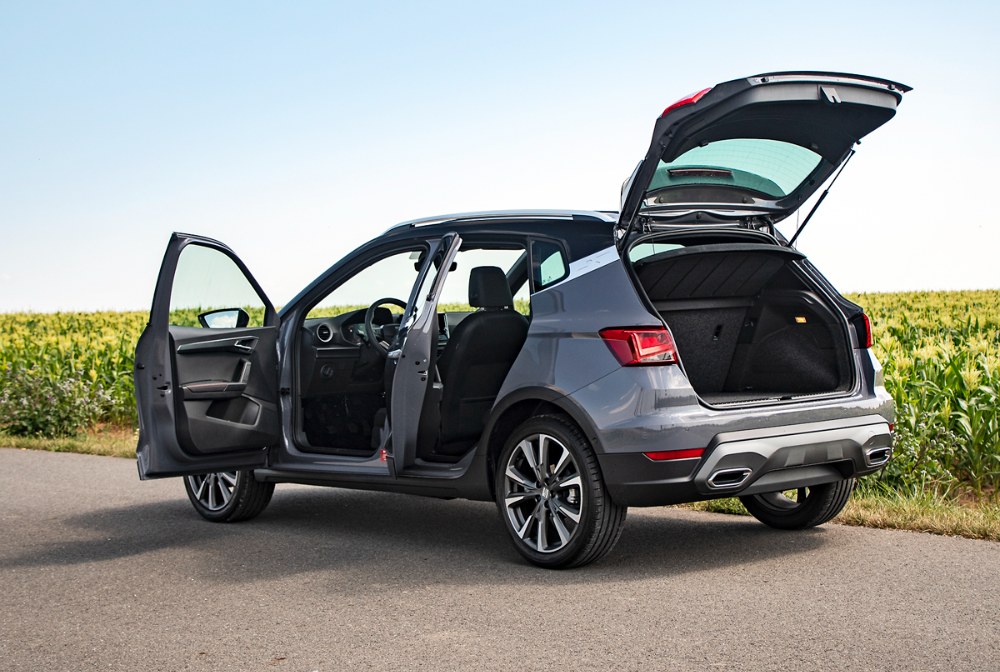Typ Arona rovněž disponuje dostatečně objemným prostorem pro zavazadla. Délka ložné plochy 716 mm opět patří mezi to lepší, co je na trhu k dispozici, na šířku jsme pak naměřili minimálně 1016 mm a na výšku 543 mm. Oficiálně udávaný objem prostoru pro zavazadla je 400 litrů. Součástí standardní výbavy pro všechny modely pak je i variabilní podlaha, díky níž lze po sklopení opěradel vytvořit téměř rovnou plochu. Prostor pro zavazadla nabízí s podlahou v horní poloze výšku 436 mm.