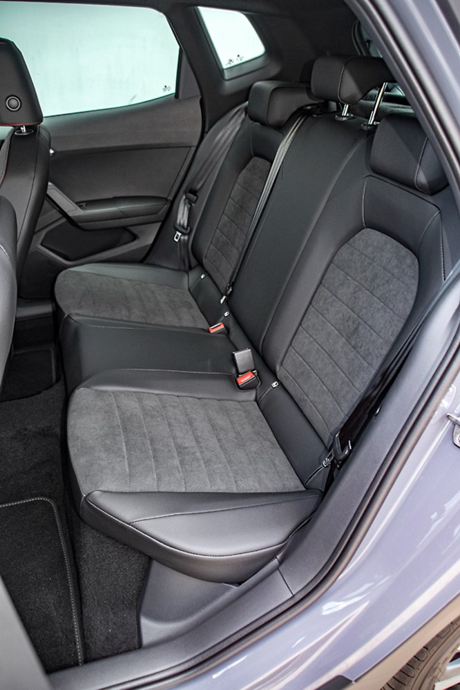 Ačkoliv jsme testovali typ Arona mnohokrát, dosud nikdy se nedostal do rubriky Náš test, takže jsme ještě nezměřili jeho vnitřní prostor. Přitom to byla právě nabídka místa v interiéru, jež byla téměř vždy uváděna jako silná stránka tohoto vozu a důvod ke koupi. Tento test to pouze potvrdil. Už pocitově uvnitř malé španělské SUV nepůsobí nijak stísněně a pohled na naměřené hodnoty ukazuje proč. V úrovni loktů vpředu jsme naměřili 1445 mm a vzadu to bylo 1420 mm, Arona se tak vyrovná třeba aktuální generaci typu Škoda Fabia. Proti ní nabízí vpředu o 8 mm více místa a vzadu ztrácí 2 mm. Velmi slušný je i prostor pro hlavu. Maximální hodnota vpředu činí 1012 mm a vzadu jsme zjistili 987 mm. Prostor pro hlavu ve druhé řadě překonává jak zmíněnou Fabii (+23 mm), tak třeba i novou generaci typu Kia Niro (+43 mm). Na poměry takto malých SUV je velmi příjemný též podélný prostor pro kolena zadních cestujících s minimální hodnotou 112 mm. Arona zkrátka vcelku bez potíží odveze i čtyři dospělé osoby. Sluší se připomenout, že ve voze se sedí poměrně vysoko. Proti typu Ibiza jsou sedadla posazena o 52 mm výše vpředu a o 62 mm výše vzadu.