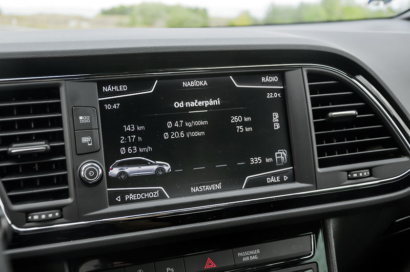 Tím hlavním je zde ale spotřeba, respektive náklady na provoz. V tomto ohledu Leon ST TGI (nebo také zmíněná Octavia G-TEC) exceluje. Oproti starší variantě založené na motoru 1.4 TSI je totiž nová patnáctistovka nejen výkonnější, ale také úspornější. Obecně lze dokonce říci, že s vozem můžete jezdit, jak chcete, ale spotřebu přes 5 kg/100 km na palubním počítači neuvidíte. Náš průměr celého testu skončil na hodnotě 4,6 kg/100 km, a to jsme jezdili téměř výhradně po dálnicích. Výjimkou byla testovací trasa pro měření spotřeby, kde vůz dosáhl průměru 3,6 kg/100 km. Po přepočítání množství doplněného plynu nám ale nakonec vyšel průměr 4,4 kg/100 km.