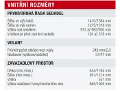 Rozvor náprav 2470 mm, rozchod kol 1457/1451 mm; d/š/v 3992/1732/1467 mm; světlá výška 133 mm; součinitel odporu vzduchu cx = 0,326; objem zavazadlového prostoru 330/1150 l; objem palivové nádrže 45 l; pohotovostní hmotnost DIN 1110 kg; celková povolená hmotnost 1565 kg.