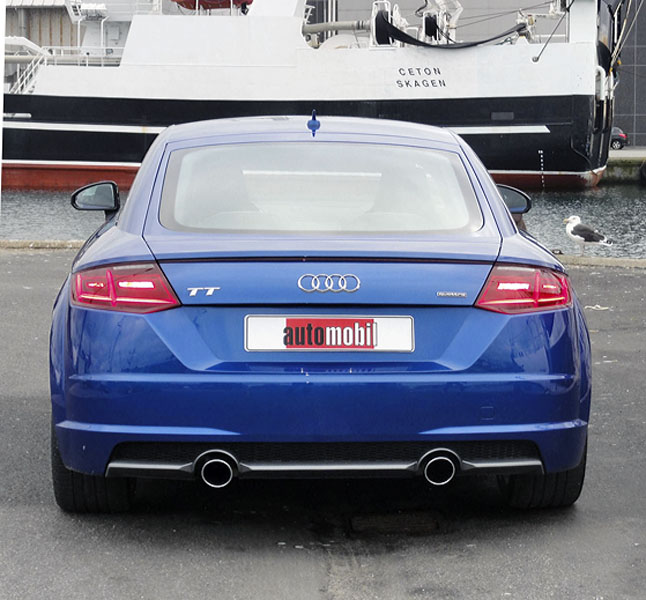 Turbodiesel dosahuje výkonu 135 kW (184 k) při 3500 až 4000 min‑1, vrchol točivého momentu 380 N.m má plochou křivku od 1750 do 3250 min‑1. Ještě si vzpomínám, že k charakteru sportovního vozu patřilo vytáčení do vysokých otáček pro radost z jízdy, ale co všechno dnes dělají lidé jinak! Ostatně diesely se před lety objevily v kabrioletech (VW Golf, Ford Escort), následovala kupé a tento trend v Evropě pokračuje, v USA byste takový automobil neprodali, a to nejen pro vyšší cenu nafty. V České republice je verze 2.0 TDI o šedesát tisíc dražší než 2.0 TFSI, takže také nevidím důvod ke koupi... Nový skelet karoserie s hliníkovým rámem ASF a podlahovou plošinou MQB je kombinovanou konstrukcí s využitím vysokopevnostních ocelových dílů tvářených za tepla; všechny povrchové panely jsou hliníkové. Hmotnost Coupé se snížila o dalších 50 kg. Proti předchůdci je vůz o 21 mm kratší, ale má o 37 mm delší rozvor náprav, takže se zmenšily převisy; šířka vozu byla redukována o 10 mm a výška se nezměnila. Torzní tuhost karoserie vzrostla o 23 %; součinitel odporu vzduchu klesl až na cx = 0,29 (výbava S line). Zadní náprava je vždy víceprvková (navzdory MQB), přední McPherson využívá hliníkový pomocný rám. Konektivita a asistenční systémy, k nimž náleží videokamera pro rozpoznávání dopravních značek, kontrola jízdy v pruhu, protikolizní brzda a nově koncipovaný ovladač MMI, jsou na obvyklé úrovni této doby. Audi TT Coupé se na českém trhu prodává od 999 900 Kč. V tabulce technických údajů jsou tři modely, které jsme okusili. Možnosti dalšího vývoje už loni na Ženevském autosalonu naznačila studie Audi TT Quattro Sport Concept s ještě silnější verzí motoru 2.0 TFSI (řada EA 888), která dosahuje enormního výkonu 309 kW (420 k) při 6700 min‑1 a točivého momentu 450 N.m v rozsahu 2400 až 6300 min‑1. Při hmotnosti 1344 kg tento vůz zrychluje z klidu na 100 km/h za 3,7 sekundy (S tronic).
