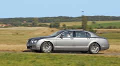 Zrychlení je impozantní, z klidu na sto za 4,8 sekundy, sportovně založeným řidičům je ovšem třeba nabídnout příplatkové keramicko-kompozitové brzdy, pokud chtějí častěji využívat potenciálu pohonné jednotky. Sportovní jízda se ke Continentalu Flying Spur příliš nehodí, příjemnější je plynout krajinou s vědomím, že mám takovou rezervu výkonu, jaká stačí na překonání jakékoli nebezpečné situace. Provedení Speed od základního modelu odlišují jiná maska chladiče, větší vstupy vzduchu, vícepaprsková litá kola, dvacetipalcové pneumatiky, snížená světlá výška o 10 mm, odvrtávané hliníkové pedály, sportovní volant, pozměněné kožené potahy sedadel, označení Speed atd. Mezi exkluzivní doplňky patří hodiny Breitling, kvalitní audioaparatura Naim, adaptivní tempomat, elektricky nastavitelná sedadla také vzadu (obě boční pozice), televizní tuner, dálkové ovládání garážových dveří a další vymoženosti, jež však zvyšují cenu vozu ze základních 172 300 eur. U vyobrazeného automobilu se vyhoupla na 189 490 eur, nejdražší položkou byla právě audiosoustava Naim for Bentley Premium Audio System za 5900 eur.