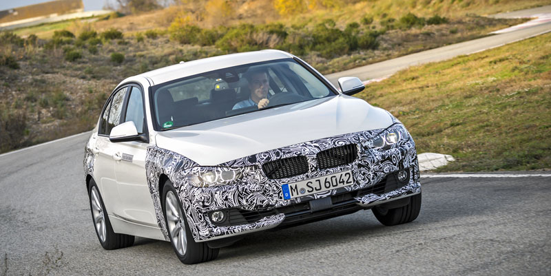 V roce 2016 bude zahájena výroba BMW 3 eDrive (PHEV) dnešní generace F30, dy-namika vozu na jedné ze zkušebních tratí Miramas byla více než překvapivá. Elektrický motor 70 kW (95 k), zabudovaný do skříně osmistupňové samočinné převodovky Steptronic ZF, nabízí maximum točivého momentu 250 N.m od nulových otáček, takže při ostrém rozjezdu dobře doplňuje zážehový čtyřválec 2.0 TwinPower Turbo (132 kW/ 180 k; 320 N.m). Kombinovaný využitelný výkon činí 180 kW (245 k) a více než 400 N.m točivého momentu. Individuálně chlazená sada akumulátorů Li-Ion 5,5/7,6 kWh je uložena vzadu nad nápravou a za ní pod podlahou zavazadlového prostoru místo náhradního kola, umožňuje elektrický dojezd 35 kilometrů, největší rychlost EV 120 km/h a kombinovanou spotřebu 2,1 l/100 km (CO2: 50 g/km). Hmotnost vzrostla o 165 kg. V elektrickém režimu jede vůz tak dlouho, dokud nesešlápnete plynový pedál až na podlahu, pak se automaticky rozběhne zážehový čtyřválec (samozřejmě i při vybití baterie). Objem zavazadlového prostoru se proti klasické verzi zmenšil minimálně, podlaha je o cca 20 mm výše. Řidič má opět k dispozici volitelné řežimy jízdy, jež ovlivňují spotřebu paliva (Comfort, Sport, ECO PRO), každý má odlišné nastavení aktivních tlumičů, řazení a hybridní strategie. Stiskem tlačítka se mění režimy PHEV, na MAX eDrive jede vůz pouze elektricky, na SAVE Battery udržuje konstantní stav nabití; má-li akumulátor méně než 50 procent kapacity, zvýší dobíjení, aby měl řidič dostatečnou kapacitu například před vjezdem do bezemisní zóny.