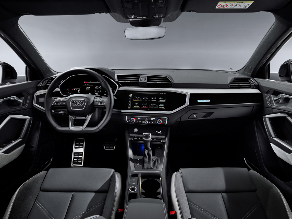 Ačkoliv se design exteriéru poměrně výrazně liší od Q3, interiér zůstal prakticky beze změn. Standardem je 10,25“ displej zobrazující údaje o rychlosti, otáčkách motoru a další jízdní informace. Volitelně si lze připlatit za větší displej s uhlopříčkou 12,3“. Na středovém panelu je umístěna obrazovka infotainmentu o velikosti 12,1“. Příplatková výbava zahrnuje prakticky veškeré moderní asistenční systémy. Patří k nim například 360° systém parkovacích kamer, sledování mrtvého úhlu, které je funkční i při couvání, nebo adaptivní tempomat. Novinkou v rámci segmentu je hlasem ovládaný osobní asistent Alexa nebo maticové LED světlomety.