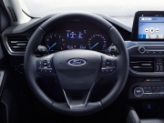 Volant je naštěstí stále „fordí“: má malý průměr a tlustý věnec a do ruky padne lépe než volant kohokoli z konkurentů (samozřejmě nejpříjemnější je v provedení ST-Line). Podsvícení prvků zůstává věrné světle modrému odstínu, přístrojový štít hostí velkoplošný displej palubního počítače. Většina prvků ovládání komfortních a bezpečnostních soustav je (nikoli překvapivě) svěřena dotykovému monitoru nad středovou konzolí, může mít úhlopříčku až 8 palců, hlasové ovládání SYNC 3 i průlomový multimediální systém FordPass Connect, jehož funkce však budou nabíhat postupně. Základní funkce rádia a ventilace naštěstí zůstaly svěřeny samostatným panelům s fyzickými ovladači. Na středové konzoli nás u verzí se samočinnou převodovkou překvapil elegantní otočný ovladač namísto konvenčního pákového voliče.