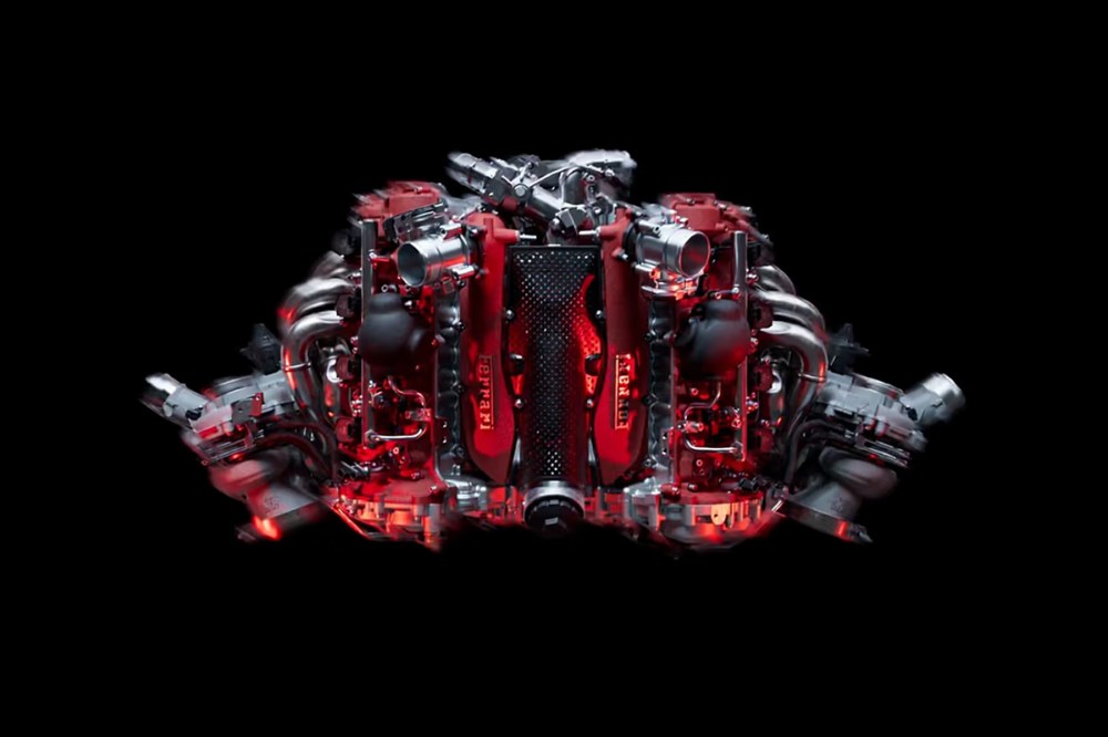 Ferrari se tedy jednoznačně snažilo, aby hlavním zdrojem síly, a také emocí, byla právě spalovací jednotka. V typu 849 si zachovala objem 4,0 litru, avšak k výkonu přibylo dalších 37 kW (50 k), takže jeho maximum činí 610 kW (830 k), což znamená litrový výkon 153 kW/l (208 k/l). Osmiválec dostal nová, větší turbodmychadla a s tím související zvětšené sání a o 20 % zvětšený průměr výfukové soustavy vyrobené z materiálu Inconel. Přepracované jsou rovněž hlavy válců, ventilové rozvody a titanové upevňovací body, ale také blok motoru, k jehož výrobě se nyní používá recyklovaný hliník.