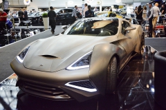Již na počátku pro něj zvolili koncepci s vpředu pod dlouhou nízkou kapotou umístěným motorem a výdechy horkého vzduchu od motoru tvarovanými tak, aby jejich proud omezoval turbulence vzduchu od otáčejících se kol. O pohonné ústrojí se staral Claudio Lombardi, jehož známe jako ředitele soutěžního oddělení Lancie (7x mistr světa WRC) a Aprilie (jednou mistr světa superbiků). U Ferrari byl technickým ředitelem zodpovědným za pohonné ústrojí F1 a sportovních vozů. Na vývoji a testování Vulcana spolupracovala další hvězda, Mario Cavagnero, který dříve zodpovídal za pohon rallyových legend Peugeot 205 T16 a Lancia Delta Integrale. V srpnu 2013 Vulcano vzbudilo velký rozruch v americké soutěži elegance v Pebble Beach. Tehdy se počítalo s laminátovou nebo příplatkovou hliníkovou karoserrií, v obou případech nesenou lehkou prostorovou kovovou klecí. Kupé mělo rozvor 2698 mm při délce 4450 mm a šířce 1840 mm (výšku firma neuvádí). Inzerovali několik způsobů pohonu. Hybrid dostal elektromotor (119 kW (160 k)/3000 – 10000 min-1; 200 N.m/0 – 3000 min-1), jehož činnost byla synchronizována s vpředu umístěným celohliníkovým, atmosféricky plněným motorem V12 (65°) 5998 cm3, DOHC a 48 ventilů (589 kW (790 k)/8300 min-1; 650 N.m/min-1) pomocí jednokotoučové spojky spojené se šestistupňovou převodovkou AMT pokročilé konstrukce pro rychlé řazení, jemné vyrovnávání točivého momentu a plynulé a optimální zrychlování.