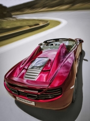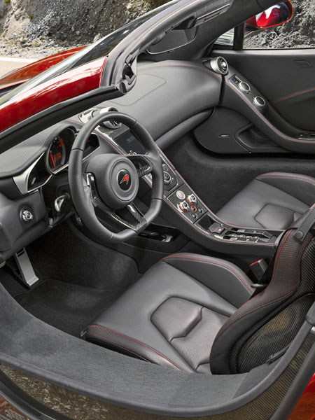 McLaren Automotive má osmatřicet autorizovaných dealerů na celém světě (22 zemí), od léta si můžete vůz objednat také u nás; prestižní britskou automobilku v České republice zastupuje známá vídeňská firma Denzel. Spider se představil počátkem července, je postaven na shodném základě jako kupé, s přeplňovaným osmiválcem McLaren M838T bi-turbo, vyvinutým (a vyráběným) ve spolupráci s firmou Ricardo, který z objemu 3,8 l nabízí největší výkon 460 kW (625 k)/7500 min‑1 a enormní točivý moment 600 N.m v rozsahu 3000 až 7000 min‑1. Samonosná kompozitová konstrukce MonoCell, doplněná hliníkovými rámy vpředu i vzadu pro závěsy kol, vychází z kupé; hmotnost vozu vzrostla asi o 25 kilogramů, elektricky ovládaná střecha však nabízí jiné zážitky z jízdy na čerstvém vzduchu s duněním osmiválce za zády. Dynamika je téměř shodná s kupé, zrychlení na sto je za identických 3,1 sekundy, pak už Spider na kupé nepatrně ztrácí; akcelerace 0 – 160/200 km/h činí 6,1/9,0 proti 6,0/8,8 sekundy, průjezd čtvrtmílové dráhy (cca 400 metrů) probíhá za 10,8 (10,6) sekundy s konečnou rychlostí 216 (219) km/h. Musíte také oželet pokles maximálky ze 333 na 329 km/h; normovaná spotřeba paliva EU však zůstává shodných 11,7 litru na stovku kilometrů. A cena? Ve Velké Británii je stanovena na 195 500 liber. Američan Antony Sheriff, výkonný ředitel McLaren Automotive, s nímž jsme se seznámili na slavnostním udílení evropské ceny Vůz roku 2001 pro Alfu Romeo 147 v Hamburku (tehdy pracoval pro skupinu Fiat), předpokládá první dodávky Spideru klientům ještě letos v listopadu.