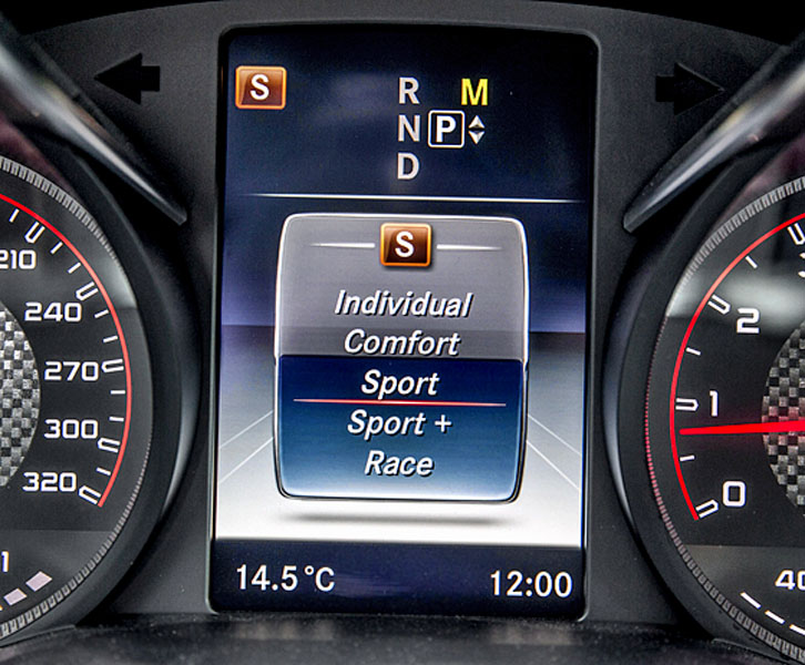 Znovu jde o přeplňování dvojicí turbodmychadel hot inside V, tedy umístěných mezi řadami válců, svírajících pravý úhel. Volitelné režimy s tlačítky na středové konzoli umožňují velmi rychlé přestavení vozu podle nálady a potřeby, jde o odezvy motoru i převodovky, ale také o tuhost aktivních tlumičů, funkci třístupňového ESP a vyladěný zvuk výfukového potrubí. Ovladačem AMG Dynamic Select se volí režim převodovky, který zahrnuje efektní dvojí vypínání spojky při sestupném řazení, a to s intenzitou odpovídající příslušné volbě. Možná jedinou nevýhodou je příliš vysoká hmotnost automobilu od 1640 kg (ale AMG GT má jen o sto kilogramů méně), s čímž musí řidič v zatáčkách a při brzdění počítat. Duté odvrtávané kotouče ocelových brzd jsou pro C 63 S vpředu o 30 mm větší, příplatkovou výbavou jsou kompozitové uhlíkovo-keramické kotouče s ještě větší účinností. V režimu M (manual) a ESP Sport Handling lze aktivovat optimalizovaný co nejrychlejší rozjezd Race Start (Launch Control). Sportovní podvozek byl samozřejmě přizpůsoben zvýšeným výkonům včetně charakteristiky odpružení a geometrie závěsů, ESP lze zcela vypnout. Výhodou elektronické verze diferenciálu je rychlejší a citlivější odezva, což se projevuje kratšími časy při průjezdech zatáček. Mercedes-AMG C 63 (S) zůstává prakticklým pěti-sedadlovým sedanem C-Klasse, ovšem se srdcem supersportu AMG GT (S), který se v mžiku promění z rodinného automobilu na sportovní nástroj vysokých výkonů; otcům ještě početnějších rodin jistě přijde vhod, že Mercedes-Benz jen s dvouměsíčním zpožděním uvedl také pětidveřovou variantu kombi pro oba zmíněné modely. A cena je přece jen významně nižší než u hliníkového kupé AMG GT, začíná od 2,038 milionu korun českých včetně DPH (více na www.mercedes-benz.cz).