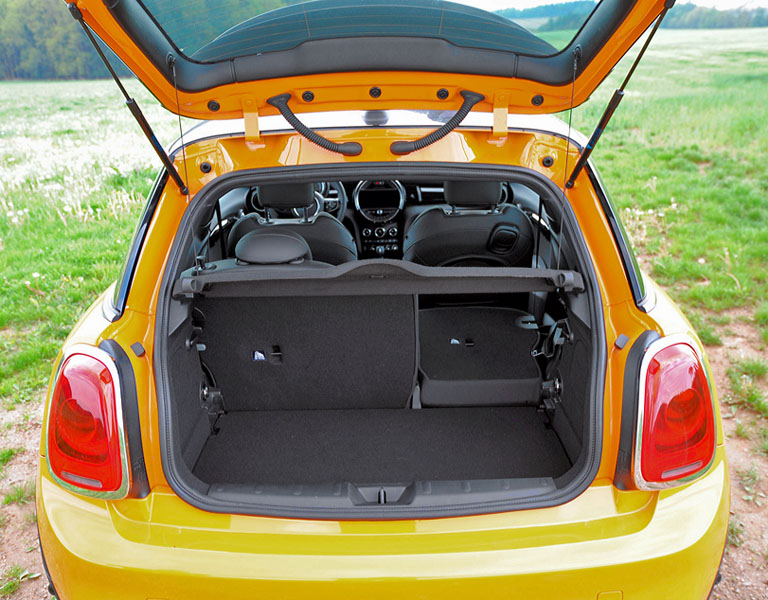 ROZMĚRY A HMOTNOSTI – rozvor náprav 2495 mm; d/š/v 3821 (Mini Cooper S: 3850)/ 1727/1414 mm; součinitel odporu vzduchu cx = 0,28 (Mini Cooper S: 0,31); objem zavazadlového prostoru 211 l; minimální pohotovostní hmotnost v pořadí uvedených motorů (v závorce AT):