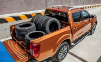 U ostatních je pak jako obvykle vedena a odpružena dvěma podélně uloženými podvěšenými listovými pery. První řešení přineslo jak úsporu hmotnosti 20 kg, tak lepší jízdní vlastnosti, druhé je proti předchůdci sice lehčí jen o 7 kg, ale zajišťuje větší nájezdový úhel vzadu. Posun k pohodlí a úrovni interiéru vedl k tomu, že výrobce zahájil výrobu nejprve velkých čtyřdveřových verzí Double Cab s tím, že jsou nejžádanější a zájem o ně roste. Pro české silnice dovozce ani nepočítá se středním formátem King Cab ve spojení se znakem náprav 4x2. Až nakonec bude zahájena výroba navýsost pracovní, ale méně žádané verze s dvoudveřovou budkou, a tedy největší délkou ložné plochy. Vnitřek vozu byl zcela přepracován ve prospěch zmíněného pohodlí a vyváženého vzhledu včetně všech detailů. Výrazně přehlednější je přístrojová deska. Přední sedadla s oporou páteře jsou nově ergonomicky tvarována; byla navržena s využitím technologie inspirované agenturou NASA. Nechybí samočinná klimatizace se dvěma zónami pro King Cab i Double Cab, stejně jako účinné zadní větrání. V nabídce jsou čtyři stupně výbavy Visia, Acenta, N‑Connecta a Tekna, ovšem všechny se sedmi airbagy, ale i s prvky pro snazší jízdu mimo zpevněné komunikace jako jsou například asistent rozjezdu do stoupání, elektronicky řízené sjíždění svahů, tempomat či elektrické ovládání bočních okenních skel dveří. Výrobce pro prezentaci odvážně zvolil terén skutečně těžký.