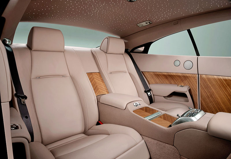Karoserie je tedy ocelová samonosná (velký Phantom má prostorový hliníkový rám), přední kola jsou zavěšena na dvojitých příčných ramenech a ta zadní na víceprvkových závěsech. Pod dlouhou hliníkovou kapotou je podélně uložen upravený dvanáctiválec z typu Ghost, přeplňovaný dvojicí turbodmychadel, jenž z objemu 6,6 litru dosahuje výkonu 465 kW (632 k) při 5600 min‑1, což je o 45 kW více než ve vozech Ghost. Točivý moment 800 N.m (+ 20 N.m) je dostupný v širokém pásmu otáček od 1500 do 5500 min‑1. Standardní kombinací je osmistupňová samočinná převodovka ZF, jež přichází s významnou novinkou v podobě zařízení SAT (Satellite Aided Transmission), které na základě informací z navigačního systému GPS bere v potaz převýšení a zatáčky na trati před vozem a upravuje pro ně funkci řazení s ohledem na snížení spotřeby paliva. Rolls-Royce Wraith zrychlí z 0 na 100 km/h za 4,6 sekundy a dosahuje rychlosti elektronicky omezené na obvyklých 250 km/h, kombinovaná spotřeba paliva činí jen 14,0 l/100 km. Příď karoserie Wraithu nese typické znaky ostatních vozů značky, ovšem s výjimkou svislého žebrování masky chladiče, uloženého v takřka svislé poloze. Při pohledu z profilu kupé Wraith vyniká zejména dynamicky působícím tvarováním zadní části karoserie ve stylu fastback, čtyřmístný interiér je pohodlně přístupný párem dlouhých dveří, otevírajících se proti směru jízdy. Posádka se může těšit na komfortní cestování té nejvyšší úrovně, dané mj. bohatou výbavou, špičkovými materiály a perfektním dílenským zpracováním. Torsten Müller-Ötvös, šéf automobilky Rolls-Royce Motor Cars z Goodwoodu, slíbil, že se řada Wraith v průběhu příštího roku dočká také svého otevřeného provedení, označovaného tradičně u značky Rolls-Royce jako Drophead Coupe (kupé s otevírací střechou). Na letošním Festivalu rychlosti v Goodwoodu představil neobvyklé jasně červené kupé Wraith závodník Justin Law, když trať do vrchu projel za méně než minutu (přesně 59,33 s) a před Goodwood House dosáhl špičkové rychlosti 144 mph (231 km/h).