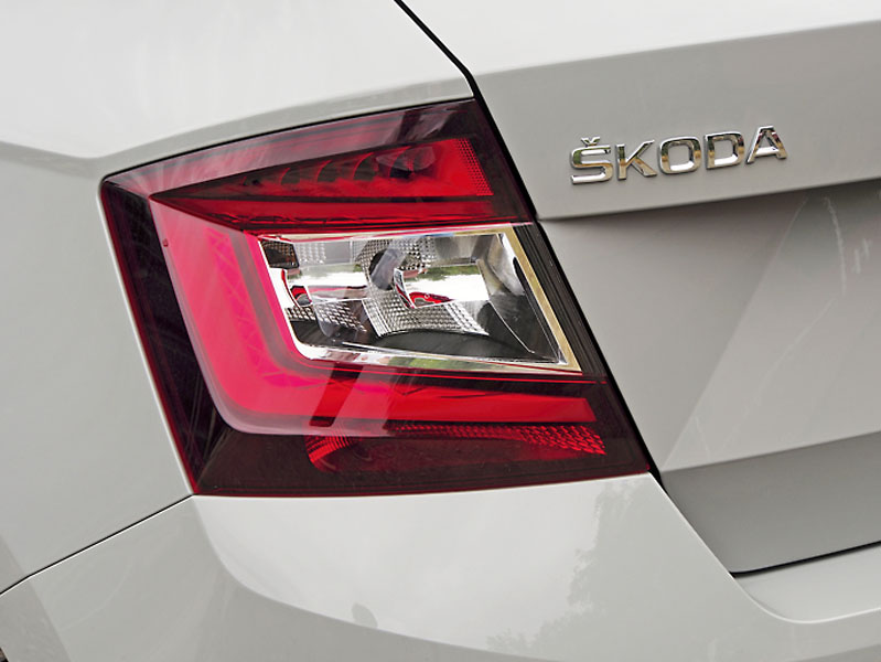 Naživo působí velmi efektně (opět) diodové vodorovné pásy denního svícení s pro škodovky typickou „křišťálovou“ grafikou (jsou standardem pro všechny verze). Zadní svítilny jsou sestaveny z několika vrstev a také jejich zpracování je velmi efektní: na každé straně jsou dvě LED pro obrysové svítilny (trubice světlo rozvádí do celé křivky v typickém tvaru písmene C) a v horní části dalších šest LED v jedné řadě pro brzdové svícení. Ostatní povinnosti zajišťují paraboly s konvenčními žárovkami.