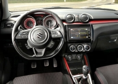 Škoda jen, že se z ní neline kdovíjak dravý zvuk, jaký by člověk od takto raženého vozu čekal. Také interiér se snaží dělat čest označení Sport – červeno-černé dekory na výplních dveří, palubní desce a středové konzole se zajímavou grafikou, červené mezikruží v otáčkoměru, malý, dole lehce zploštělý multifunkční volant a v neposlední řadě také výrazně tvarovaná sportovní sedadla, jež mají opěrku hlavy integrovanou do jednoho kusu s opěradlem a prošívání červenou nití – to vše jsou specifické prvky. Zajímavé je, že i když se ve Swiftu Sport nesedí vyloženě nízko, díky velkým možnostem nastavení volantu si najdete pohodlnou polohu, a že sedíte výš, nebudete vnímat jako vyložený nedostatek. Když už jsme uvnitř vozu, nelze nezmínit jeho opravdu bohatou výbavu. Na voze této velikosti je vskutku nebývalá, vedle 7“ dotykového displeje se širokými možnostmi konektivity a 3D mapami na SD kartě má Swift Sport hromadu bezpečnostních systémů a jízdních asistentů – monitoruje pohyb před vozem, umí sám brzdit před překážkou, varuje před opuštěním jízdního pruhu nebo pokud začne na silnici kličkovat, má adaptivní tempomat, asistent dálkových světlometů atd.