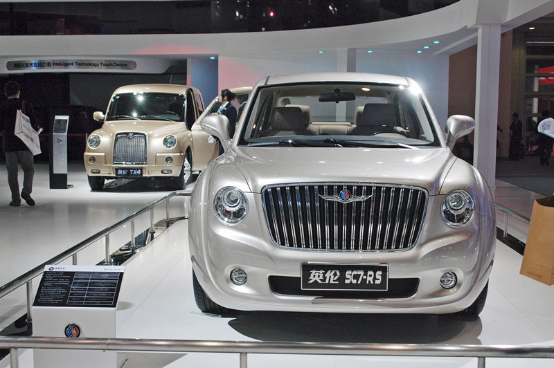 Velká prohlášení o dobytí evropského a amerického trhu dostala jiný význam, když Geely ani zdaleka neplnily základní předpisy a jejich homologace se stala nemožnou… Vize o dobytí světa se přibrzdila, ale už na autosalonu v Šanghaji v dubnu 2009 vyhlásil Li Shufu novou strategii a představil tři nové koncernové značky Gleagle, Emgrand a Shanghai Englon (nyní pouze Englon), tedy nedlouho před tím, než získal Volvo. Navíc smlouva s britským koncernem Manganese Bronze Holdings (MBH) umožnila licenční výrobu známých London Taxi (LTI) TX4 v Šanghaji, jež se stala základem produkce Englonu (značka prý vyjadřuje obdiv britskému, je spojením slov England a London). Na Pekingském autosalonu 2012 vystavoval Geely vozy zmíněných tří značek, Volvo mělo stánek v jiné hale. Podle koncernové strategie je Englon klasický a noblesní, tak posuďte sami podle fotografií, na nichž jsme se zaměřili na ty modely, které údajně spojují tradiční britské linie s čínskými elementy...