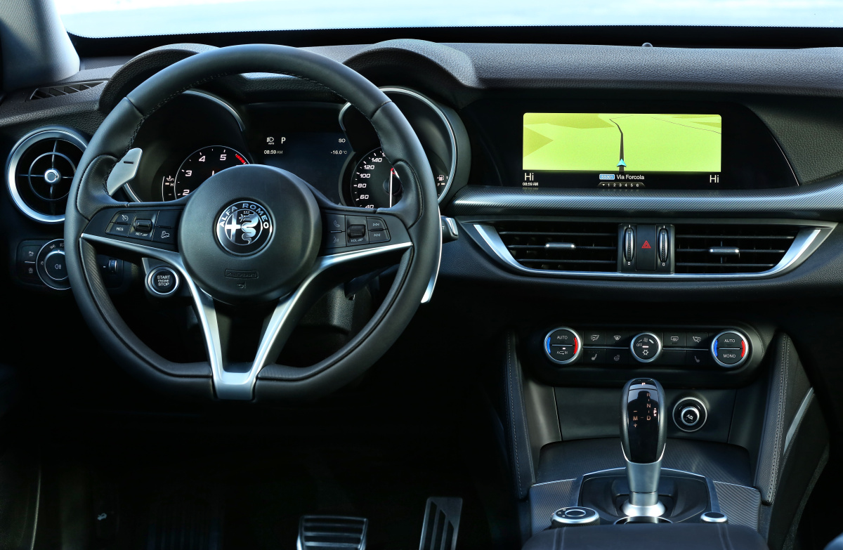 Giulia i Stelvio sjíždí ze stejné výrobní linky supermoderní továrny v italském Cassinu (viz aktuální Automobil 3/´17) a dle tvrzení představených se vozy Alfa Romeo nikdy jinde, než v Itálii vyrábět nebudou. Je to skutečně italská záležitost, vozy jsou přibližně ze tří čtvrtin sestaveny ze součástek vyrobených v Itálii! Velmi podobné jsou též interiéry obou vozů. Volant, přístrojový štít a všechny kontrolní a ovládací prvky byly beze změn převzaty z Giulie, pouze proporce palubní desky či středové konzole musely být s ohledem na jinou kategorii vozu přepracovány.