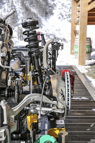 Výše uvedené beze zbytku platí také pro zcela nový typ Alfa Romeo Stelvio, jenž svoji světovou premiéru slavil na podzimním autosalonu v Los Angeles (ve vrcholné verzi Quadrifoglio, jež se v Evropě objeví až na podzim letošního roku) a tu evropskou na teprve před několika dny uzavřené ženevské 87. International Motor Show. Horkou novinku jsme měli možnost mezi prvními na světě prakticky vyzkoušet na pomezí švýcarských a italských Alp, přičemž testovací trasa nás zavedla až do těsné blízkosti uzavřeného průsmyku Passo dello Stelvio, který novince Alfa Romeo daroval své jméno. Stelvio spolu s Giulií sjíždí z výrobní linky továrny Cassino, jež patří k tradičním provozům koncernu Fiat (od roku 1972) a FCA do jeho rekonstrukce do podoby jedné z nejmodernějších automobilek na světě investoval horentní 1,3 miliardy eur. Právě v Cassinu jsme s kolegy z poroty volící evropský Vůz roku (Car of the Year, COTY) měli v souvislosti s prohlídkou továrny možnost již na počátku února krátce řídit první, tehdy ještě maskované prototypy Stelvia (viz AR 3/’17). „Vychutnali“ jsme si tehdy podivné pohyby poháněcího ústrojí při razantních dynamických změnách, nelícující panely karoserie, pazvuky nejrůznějších druhů a všechny další myslitelné neduhy prototypů, ovšem ve Svatém Mořici jsme již měli k dispozici sériové vozy, jež prokázaly, že šlo vesměs o ony pověstné dětské nemoci.