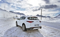 Nejprve se začnou prodávat nejvýkonnější zážehové a vznětové čtyřválce, později přibudou jejich slabší verze a na podzim nabídku korunuje špičkové Stelvio Quadrifoglio, jež ze Stelvia učiní s drtivým náskokem nejsilnější a nejrychlejší SUV své kategorie. Právě nejsilnější čtyřválce jsme měli možnost na počátku března v Alpách vyzkoušet. Už v první zatáčce je cítit, jak pečlivě je nové Stelvio naladěno, jak sehraně spolupracují jednotlivé mechanické skupiny s elektrickým řízením a jak tvoří dokonale uzavřený celek. Když zrychlíte, jsou znát nízké těžiště i hmotnost (pohotovostní se pohybuje kolem 1660 kg) a minimální náklony karoserie. Pokud se milovník italských sportovních automobilů a rychlé jízdy oprostí od kontroverzního faktu, že sedí v době poplatném crossoveru, zažije podobné opojení jako v Giulii. Boční zrychlení Stelvia údajně činí rekordních 0,92 g, řízení s nejstrmějším převodem ve své třídě (12:1) by mohlo být alespoň v režimu „D“ poněkud tužší, přesto však řidiče vždy precizně drží v obraze o aktuální situaci pod předními koly. Ideální rozložení hmotnosti mezi nápravy přispívá k hbitým změnám směru jízdy, snad s žádným jiným SUV není střídání zatáček v utáhlých serpentinách takovým požitkem.
