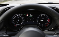 Brzdový systém s čtyřpístkovými pevnými třmeny Brembo vpředu má propojené řízení kapalinové soustavy s rekuperací v rámci jednotky IBS a v pedálu přechody mezi jednotlivými režimy nepoznáte. Značnou předností Tonale je standardní zástavba vektorování distribuce točivého momentu mezi přední kola (zásahy brzd) a adaptivních tlumičů FSD. Ty samočinně upravují svoji charakteristiku na základě frekvence kmitání kol při přejezdu nerovností. V poloze D (Dynamic) známého voliče provozních režimů D.N.A. citelně přitvrdí (což lze ale stiskem tlačítka deaktivovat). Jakkoli je řízení precizní a citlivé, ocenili bychom právě v módu D jeho větší tuhost a přesnost. A jde o obecnou poznámku, na níž jsme se s kolegy z COTY vesměs shodli a přítomní vývojáři slíbili, že na tom zapracují: režim D by měl být od ostatních zkrátka výrazněji odlišen.