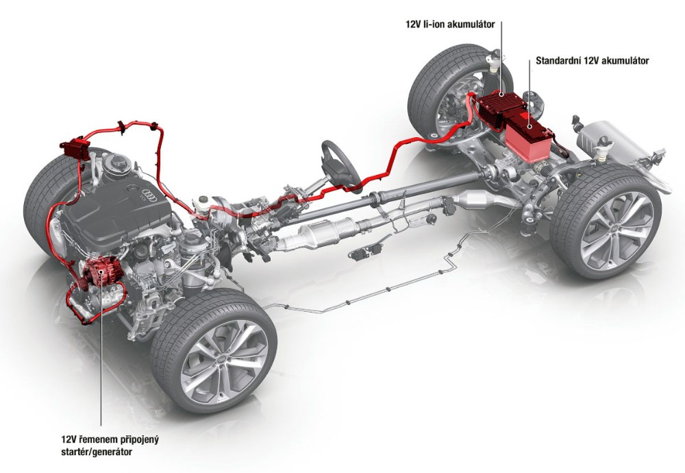 Pro pohon jsou k dispozici zážehové a vznětové motory 2,0 litru v několika výkonových úrovních, zatímco vrchol nabídky tvoří verze Q5 50 TDI a SQ5 TDI se vznětovým šestiválcem o výkonu 210, resp. 251 kW. My jsme zkoušeli poměrně střízlivě sestavenou Q5 40 TDI Quattro S Line. Její čtyřválec oproti předchůdci (viz AR 6/’17) nabyl o 10 kW na výkonu, což se nepatrně projevilo v dynamických schopnostech, ale především prošel řadou dílčích modifikací kvůli tuhnoucím emisním limitům. Zaveden byl již dříve představený tzv. Twin-Dosing, vstřikující v rámci systému katalytické redukce (SCR) činidlo AdBlue před dva sériově zapojené katalyzátory, a mild hybridní systém pracující s 12V napětím a opírající se o práci startér/generátoru. Při jízdě tento systém reaguje zcela neznatelně a mírně pomáhá při rozjezdech z nízkých rychlostí, čímž má přinášet úsporu ve spotřebě asi 0,3 l/100 km. Při jízdě setrvačností vypíná a z poháněcího řetězce zcela vyřazuje spalovací motor.