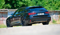 Na západ od našich hranic patří Audi A6, spolu s vozy BMW řady 5 a Mercedes-Benz třídy E, k běžnému standardu lepších firemních pozic. Jak si jistě vzpomenete, před několika lety flotilu vozů této řady například převzala i jistá pražská taxislužba. Pátá generace řady Audi A6 se představila před třemi roky (viz AR 5/’18). Zůstává stálici na evropském trhu prémiových vozů vyšší střední třídy a prochází průběžným rozšiřováním nabídky, v němž lze dobře číst diverzifikaci nabídky nejen modelů, ale též jednotlivých druhů poháněcích ústrojí. U příležitosti 20. výročí bylo předloni představeno Audi A6 Allroad, jehož první provedení v roce 1999 spolu s vozy Subaru Legacy Outback a Volvo XC70 stálo za vznikem kategorie kombíků se zvýšenou průchodností terénem, zatímco teprve před několika měsíci jsme vám představili plug-in hybrid A6 Avant 55 TFSI e Quattro (viz AR 2/’21), kdežto ostatní verze nyní plošně disponují 48V mild hybridní technikou pro snížení emisí CO2. Vládcem celé řady však zůstává model RS 6 Avant. Od třetí generace Audi A6 (resp. od roku 2013) je dodáván výhradně s pětidveřovou karoserií. Do té doby bylo Audi RS 6 srovnáváno především s BMW M5, z čehož hbitější mnichovský matador zpravidla vycházel jako „supersedan“, a tak se u Audi rozhodli stavět RS 6 jen jako „superkombi“. A tento titul vozu na snímcích bezpochyby náleží…