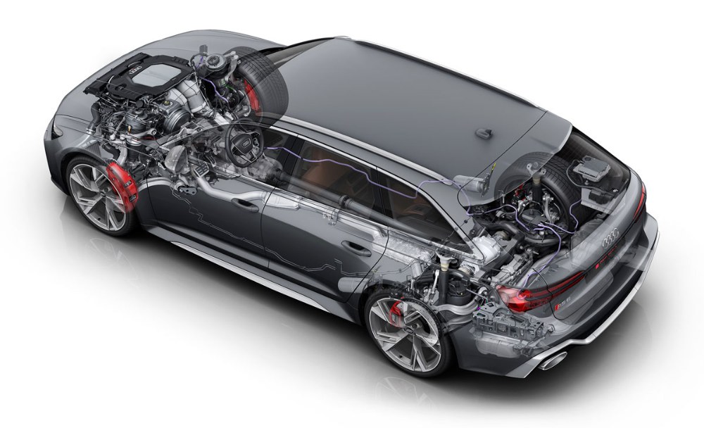 Kapalinou chlazený čtyřdobý, dvojicí dvojitých turbodmychadel umístěnou mezi hlavami přeplňovaný zážehový osmiválec EA825 V8/90°, uložený podélně před přední nápravou; DOHC 4V, řetěz, odpojování poloviny válců při částečném zatížení (AVS); elektronické přímé vstřikování (250 bar); trojčinný katalyzátor, filtr pevných částic, EU6; 3996 cm3 (ø 86 x 86 mm); 10:1; 441 kW (600 k)/6000–6250 min-1 a 800 N.m/2050–4500 min-1; mild hybridní periferní 48V systém s řemenem připojeným startér/generátorem a 48V akumulátorem pod podlahou zavazadlového prostoru.