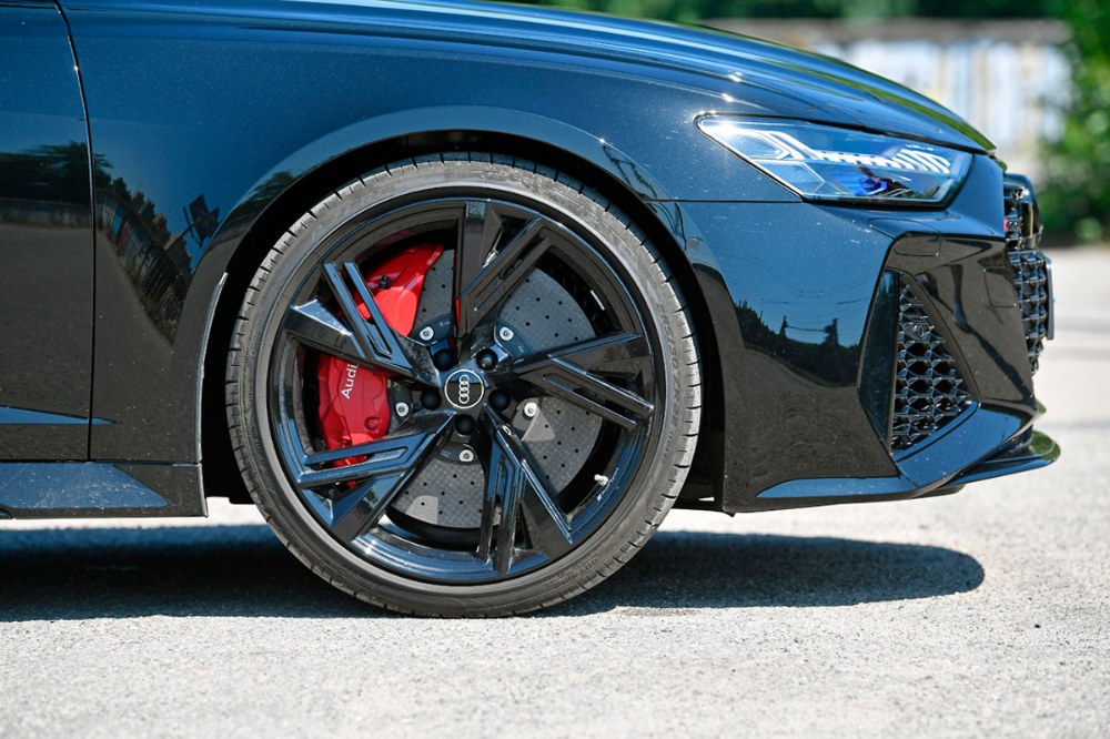 Audi RS 6 sdílí techniku s typem RS 7 Sportback (viz AR 7/’20). Je ódou na sílu, symbolem absolutní dominance prakticky nad vším, co na silnici potkáte. Z klidu na 100 km/h zrychlí za 3,6 sekundy a s paketem RS Dynamik (+120 600 Kč) je nejvyšší rychlost zvýšena z obligátních 250 na 305 km/h, takže deklasujete například i kupé Porsche 911 Carrera S. Oproti němu je přitom RS 6 Avant nepatrně levnější, a k tomu s ním pohodlně svezete rodinu na dovolenou. Karbon-keramické brzdy (+271 300 Kč) se chovají překvapivě civilizovaně; jen pokud jsou vysloveně studené, je třeba na pedál trochu více tlačit, jinak se jen můžete opájet jejich přesným dávkováním a nevadnoucím účinkem, jenž spolu se sofistikovaným a přesně nastaveným podvozkem a širokými pneumatikami řidiči poskytují pevnou nadvládu nad vozem i v tempu a v situacích, v jakých by byl běžný moderní automobil již jen neovladatelnou masou železa. Součástí zmíněného paketu RS Dynamik je rovněž sportovní zadní diferenciál rozdělující aktivně hnací sílu mezi zadními koly a řízení zadních kol, jež usnadňuje manévrování a zároveň zlepšuje stabilitu v rychle projížděných zatáčkách. Audi RS 6 Avant však dokáže být až překvapivě pohodlné, a zvláště v režimu Comfort použitelné pro každodenní užívání, přičemž i ve sportovnějším nastavení zůstává podvozek dostatečně poddajný. Vysoká hmotnost je samozřejmě při jízdě znát, je mimochodem shodná s plug-in hybridní verzí, oproti níž ovšem RS 6 Avant nabízí citelně větší zavazadlový prostor. Setrvačné síly v příčné a podélné, ale i svislé ose jsou však znamenitě tlumeny, podobně jako rázy od nerovností. V kombinaci s prostorným, variabilním a bohatě vybaveným interiérem lze touto bestií rozvážet děti do školy, o víkendu jezdit na chalupu a o prázdninách na dovolenou. A to ještě můžete zapřáhnout přívěs o hmotnosti až 2100 kg…