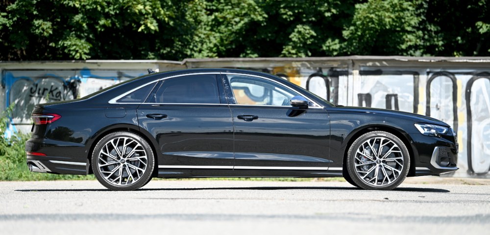 Audi S8 osloví hlavně kombinací komfortu, špičkových jízdních vlastností a výkonů. Pod přední kapotou se skrývá ušlechtilý zážehový čtyřlitrový osmiválec dopovaný dvojicí turbodmychadel, jenž proti mnichovské i stuttgartské konkurenci přeci jen spočívá nikoli za přední nápravou, ale spíše před ní. Délka vozu, ale zejména promyšlená konstrukce závěsů kol a prvky jejich elektromechanického řízení však dávají v Audi S8 na koncepčně poněkud přetíženou příď zapomenout. Audi S8 disponuje již v základní výbavě nejvyspělejším provedením podvozku. Pneumatické pružiny a aktivní tlumiče jsou samozřejmostí, ale skutečné divy dělají bleskově reagující elektromotory soustavy progresivního pérování, upravující díky komplexnímu 48V systému zdvih jednotlivých kol a nahrazující konvenční zkrutné stabilizátory. Když vůz odemknete nebo z něj vystupujete, zdvihne se S8 o 50 mm. V zatáčkách se v režimu Comfort+ automobil naklání jako motocykl, čili vnější kola zvýší světlost a ta vnitřní ji sníží, takže posádka zpravidla průjezd zatáčkou ani nezaznamená. Systém podobně působí i při zrychlení a brzdění, kdy se příď nezdvihá ani nepotápí. Vše se děje v reálném čase a v součinnosti s armádou senzorů a výkonnou výpočetní technikou. Krátké příčné nerovnosti zvládne třeba Mercedes-Benz třídy S s větší plavností, ale na delší zpomalovací práh se Audi S8 umí připravit lépe: před nájezdem na něj přizvedne celý podvozek a muldu jakoby přeletí, když prvky závěsů kol precizně kopírují profil vozovky, aniž by to kdokoli uvnitř postřehl. Hbitost Audi S8 dále podtrhuje aktivní řízení zadních kol, jež usnadňuje manévrování a ve vyšších rychlostech stáčení se vozu do zatáčky.