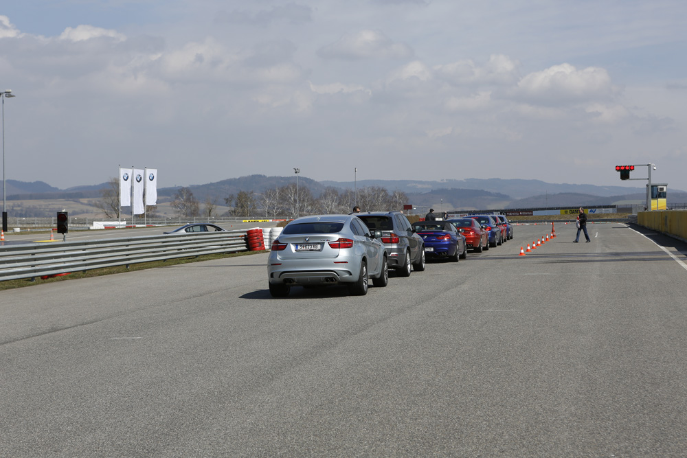Svezení ale začíná ve velkém BMW X6 M. Tento pět metrů dlouhý respekt budící stroj má své nepopiratelné kouzlo. Spojení sportovního vozu a segmentu SUV se může zdát zvláštní, avšak jak se ukazuje, poskytuje speciální zážitky. Asi neexistuje jiný tak vysoký stroj, který by byl schopen poskytnout takovou ochotu k zatáčení a podmanivost. Aktivní pohon všech kol spolu s variabilní distribucí točivého momentu mezi zadní kola (diferenciál Dynamic Performance Control) jsou skvěle sladěné a při řízení máte pocit, že tohle více než dvoutunové monstrum ztratilo snad čtvrtinu své hmotnosti.
