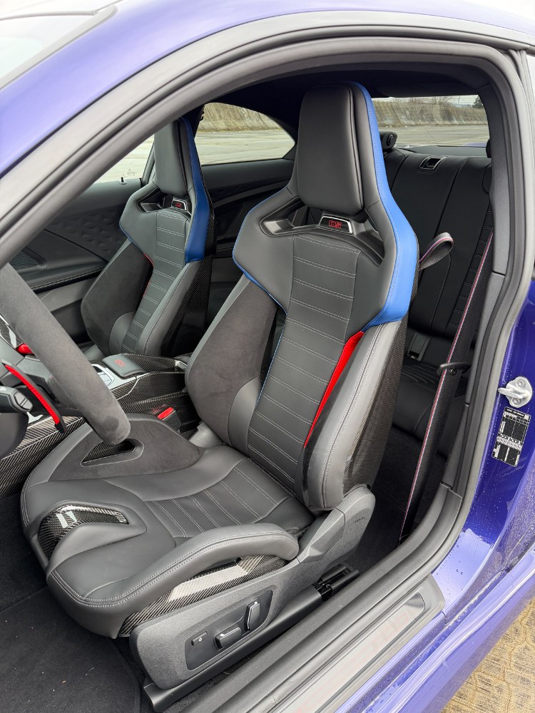 Přitom ale když chcete, M2 CS dokáže nabídnout i mnoho zábavy za hranicí přilnavosti zadních pneumatik. Právě bezprostřednost a rychlost reakcí umožňuje mimořádně přesnou kontrolu nad přenosem hmotnosti, a tím přirozeně snadné driftování. Právě v této disciplíně je ve srovnání s klasickou M2 značný rozdíl. Verze CS je hbitější, přesnější a působí lehčím a přímočařejším dojmem. A to není dáno tím, že zásluhou několika komponentů z uhlíkových kompozitů ztratila na hmotnosti kolem 30 kg. Jde především o naladění podvozku a jeho souznění s výkonnějším motorem.