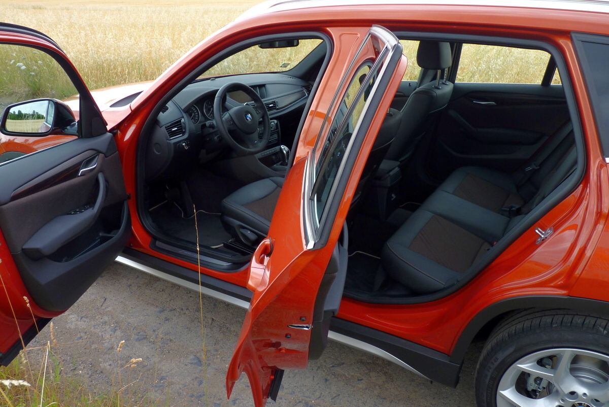 Zvýšená světlá výška karoserie typu SUV umožňuje výlety mimo cesty se zpevněným povrchem, navíc se nemusíte bát, že při manévrování v neznámých prostorech někde utrhnete spoiler nebo výfuk. Příjemný je parkovací asistent s čidly v obou náraznících a grafickou i akustickou indikací vzdálenosti; prakticky až v závěru cesty nám došlo, že BMW X1 nemá dnes populární samočinné parkování, ovšem to jsme skutečně nepostrádali. Přístrojový štít i systém ovládání audiosoustavy na volantu a tempomatu samostatnou páčkou působí již poněkud archaicky a dávají vzpomenout ještě na první generaci BMW řady 1 (E87). Přesto je ergonomie rozmístění všech kontrolních a ovládacích prvků znamenitá a nedostatky lze hledat jen obtížně.