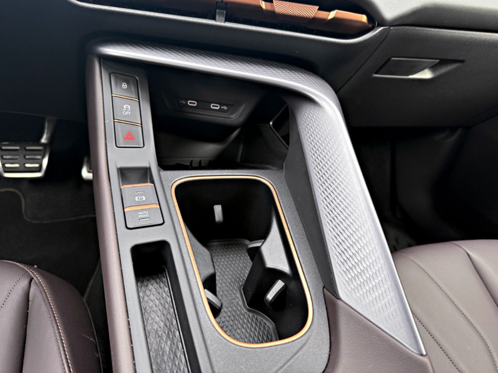 Uvnitř Terramar působí zcela jinak než jiné vozy největšího německého automobilového koncernu. Interiér řidiče příjemně obejme a zaujme i použitými materiály. Detaily v bronzové barvě nejsou u značky Cupra novinkou, nicméně jsou nápadité a vhodně dokreslují u testovaného vozu použitou atraktivní kombinaci černých povrchů palubní desky a hnědého koženého čalounění sedadel.