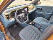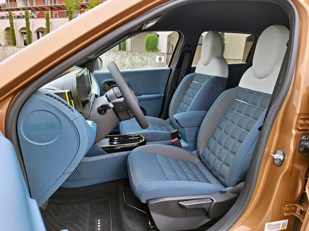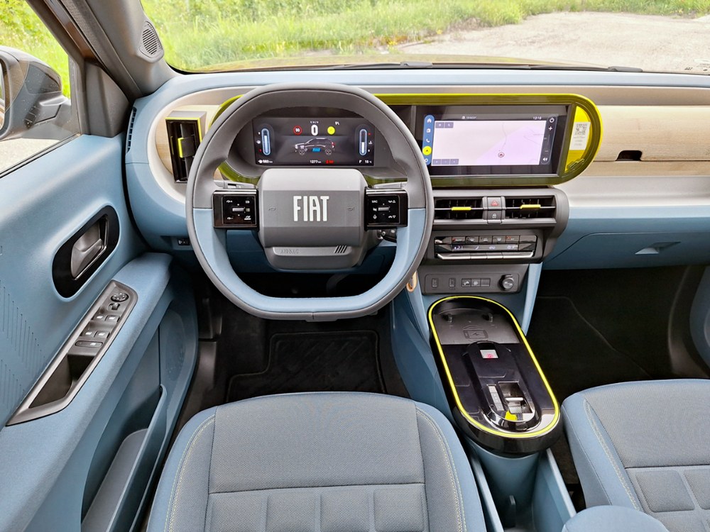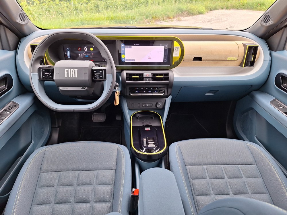 Pracoviště řidiče je prakticky shodné s elektrickou verzí Grande Pandy, takže zájemce o podrobnosti odkazujeme na Automobil z letošního března. Fiat Grande Panda Hybrid přijíždí se zaváděcí cenou 454 900 Kč za verzi Pop s 10palcovým digitálním přístrojovým štítem, připojením pro chytrý telefon, klimatizací, vedením v jízdním pruhu, dálkovým centrálním zamykáním, elektrickým spouštěním skel v předních dveřích, ocelovými ráfky či akustickými senzory vzadu. O 40 tisíc korun dražší stupeň Icon přidává třeba kompletní vnější LED svícení, multimediální systém s 10,25” dotykovým monitorem nebo tempomat a vrcholný La Prima (na snímcích) za dalších 40 tis. Kč nabízí i navigaci, bambusový obklad palubní desky, litá kola, dešťový senzor, indukční nabíječku telefonu či akustické senzory v obou náraznících.