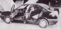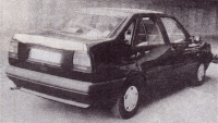 Foto: Milan JozífFiat Tempra nastoluje do 90. let nové proporce dalšími sníženími a prodloužením přídě do výrazného převisu, aby vytvořením extrémně krátké, zato dost vysoké stupňovité zádě s objemným zavazadlovým prostorem. Shodnost dveří s Tipem vizuálně lehce potlačuje matová čerň druhého a třetího sloupku. V pohledu zezadu jsou vidět nevelké spáry oddělující povrchový výlisek sloupku D, tedy sloupku zadního skla, od střechy a blatníku. Horní spára je podélná a navazuje na horní okraj dveří, spodní spára umožňuje snadnou výměnu zadního blatníku, který je – stejně jako přední – pouze přišroubován k nosnému skeletu. Všechny blatníky, dveře, kapota i víko zavazadlového prostoru a střecha jsou galvanicky pozinkované z obou stran, zatímco skelet a ostatní plechové díly jen na exponovaných plochách